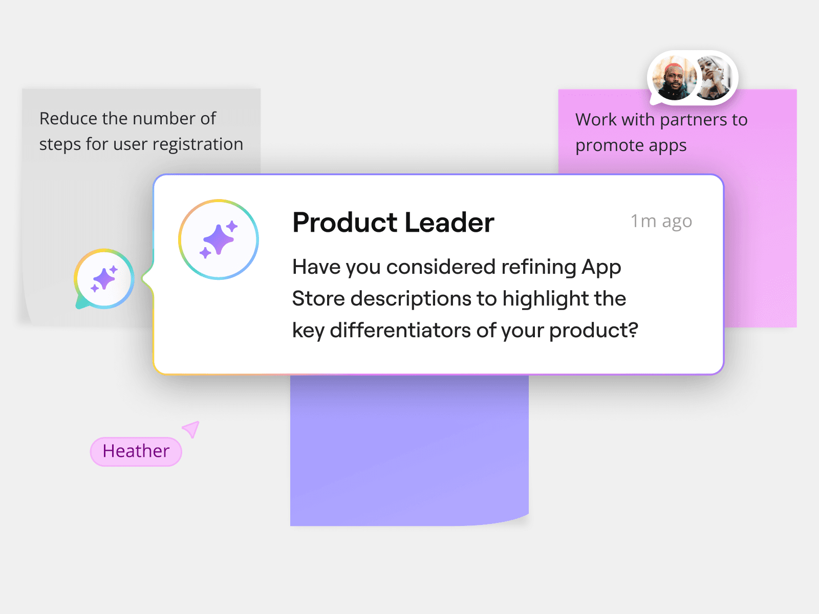 Get instant Al-powered help on the canvas. Whether you need an Agile coach, product leader, or marketing expert, Al Sidekicks provide contextual advice and act like a teammate on the board with you.