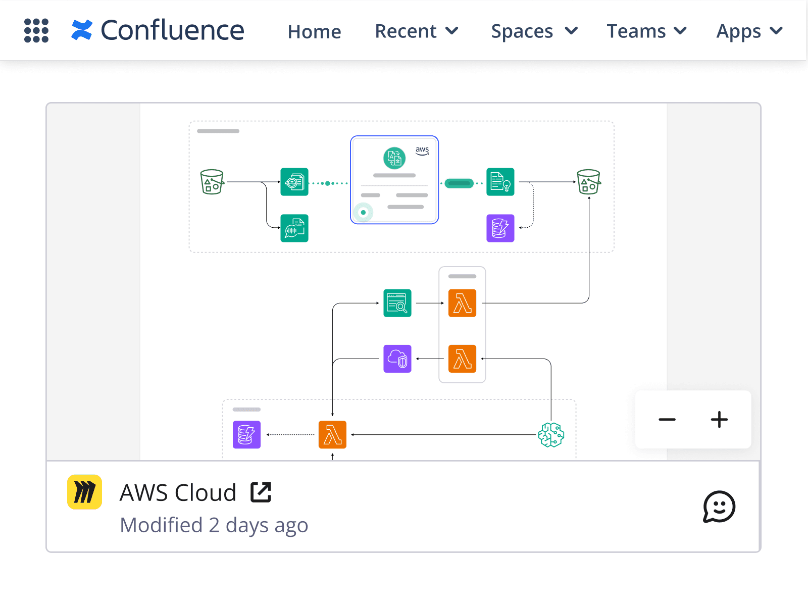 Share context and knowledge with your team by bringing live diagrams into documentation tools, such as Coda or Confluence.