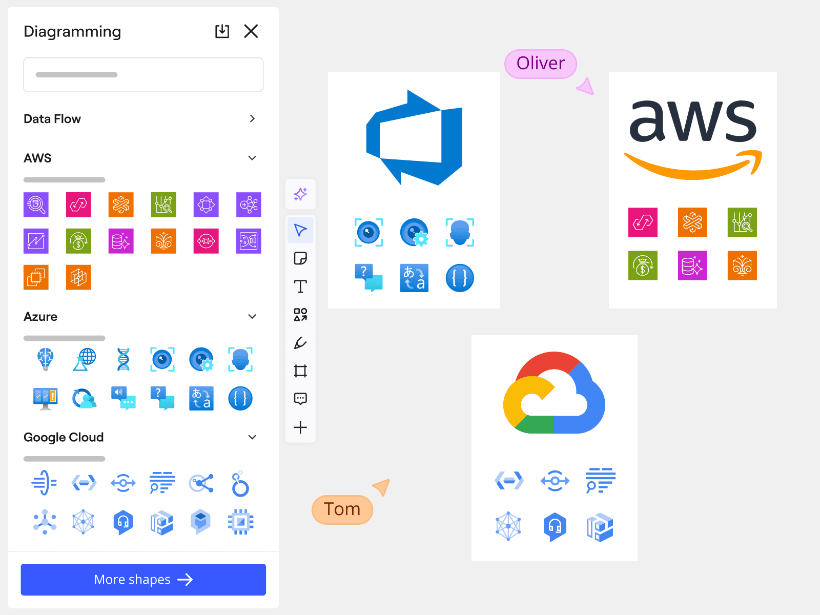 Accelerate cloud development with Miro, whether your business runs on AWS, Azure, or GCP.