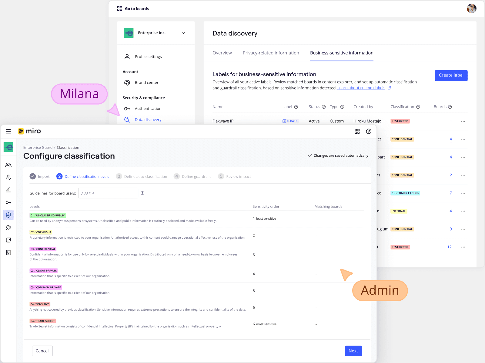 Miro offers the widest range of configurable, and native, security and governance controls. They all adapt to meet your specific requirements, no matter your organization's size or complexity.
