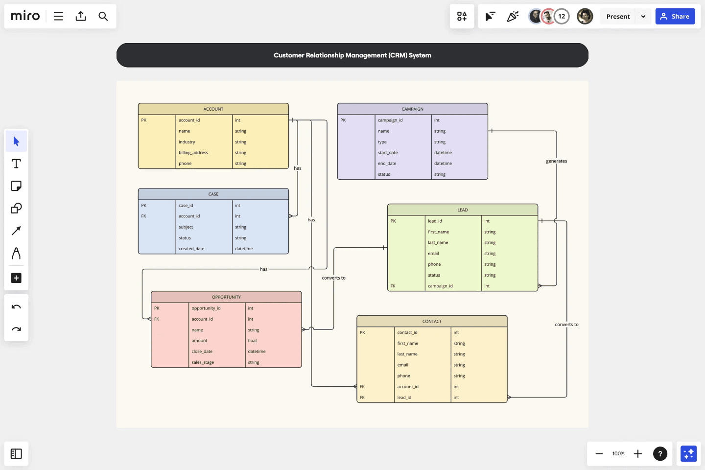 Create a clear visual representation of a company's CRM system with the ERD Customer Relationship Management (CRM) Template.